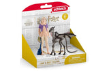 Harry Potter meets Ravenclaw student Luna Lovegood during his fifth year at Hogwarts. Daughter to the editor of The Quibbler, Luna’s eccentric ideas might not always be accepted by her fellow classmates, but she is often a voice of reason for Harry. Standing next to her is a magical creature, a Thestral.