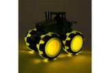 This John Deere and Monster Treads mashup gives you the best of both worlds with the power of John Deere meeting off-road monster vehicle styling! Kids will have monster fun with this toy tractor that features super bouncy monster tread tires that light up when they spin.