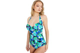 Gorgeous Womens/Ladies Bold Blooms Tummy Control One Piece Swimsuit (Blue/Green) (34F)