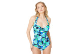 Gorgeous Womens/Ladies Bold Blooms Tummy Control One Piece Swimsuit (Blue/Green) (38FF)