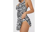 Gorgeous Womens/Ladies Zebra Print Skirted One Piece Swimsuit (Black/White) (32G)