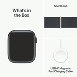 | What's In The Box: | Apple Watch Series 9 45mm Midnight Aluminium Case with Midnight Sport Loop, USB-C Magnetic Charging Cable |
