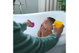 Perfect for multi-sensory play, this soft toy and teether in one features rattles, crinkle sounds and more for baby to explore. A soft bandana teether toy detaches for mom or dad to wear around the wrist for quick access.