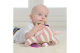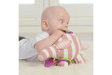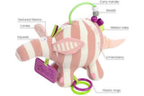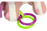 With knotted legs, buggy attachment loop, 2 teethers, beads, crinkle and a bell.