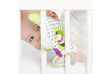 The wing also doubles as a pocket to hold the teether. It also has a teether connector ring so it can hang from buggies or cots.