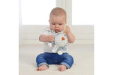 The bright, embroidered fabrics and bean bag interior make it perfect for cuddles. There is also a crinkle carrot in the rabbit’s pouch which can be removed.