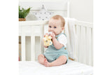 This pretty ladybug, made of wood and silicone, stimulates the sense of touch with its different materials and can be easily chewed during dental pain. Thanks to the large holes on its back, it is particularly easy to grip for small children’s hands. By shaking the rattle, the child explores the sounds thanks to the small bell located inside and develops fine motor skills.