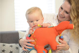 Built into each side of this sturdy, rounded cube is a soft silicone bubble with a tab to grab and pull. Fingers can’t help but push them, pull them, and pop them again and again. All the while, fine motor skills are honed, and busy minds are soothed!