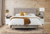 Covered in a natural coloured linen fabric featuring cushion button detail, this is a classic piece that will compliment many bed frames or ensembles in a standard queen bed size.
