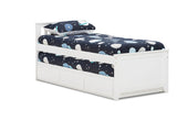 Available in classic white, the Captain Jack single trundle bed also features a simple design that will lend itself to a variety of décors, whether you're creating an underwater, space or safari theme.