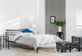 The modern and contemporary design comes in a matte black finish and includes a feature headboard.