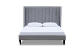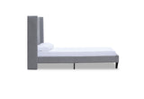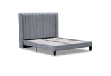 The headboard features vertical stitching detail with enveloping winged sides for an elegant feel.