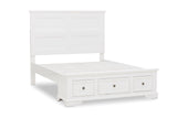 Available in a luxe white, the high headboard gives this bed an air of romance.