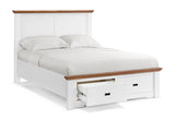 Bring timeless charm and clever functionality into your bedroom with the Charlesbourg King Bed. Designed with a rustic two-tone finish and unique rough sawn detailing, this bed combines traditional country character with modern storage solutions.