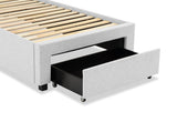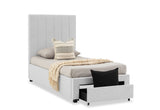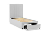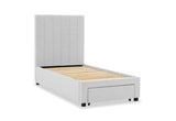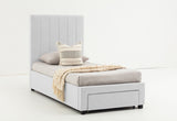Meet the Corbin Single Bed, a harmonious blend of style, comfort, and quality craftsmanship. Elevate your bedroom with this exquisite piece, available in your choice of luxurious hues of Grey, Light Grey, or Dark Grey Fabric, allowing you to tailor it to your unique taste. Immerse yourself in the plush sophistication of the Corbin's design. The headboard features sumptuous plush vertical panels, creating a tactile and visually stunning focal point. This thoughtful addition of a drawer in the footboard allows you to declutter your space while maintaining the bed's sleek appearance. The Corbin isn't just a bed; it's a statement piece that effortlessly combines practicality with design finesse. Indulge in the comfort of the high upholstered headboard, providing not just a cozy backdrop but also a touch of grandeur to your sleeping sanctuary. The Corbin Single Bed isn't just about style; it's about creating a haven that reflects your taste for quality and sophistication.