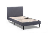 The dark grey upholstered bed frame with a geometric design headboard captures the eye, and the durable and sturdy metal frame has a reinforced centre bar for extra support.