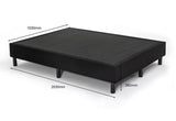 This bed base features a sturdy black steel frame that is supported by six legs for maximum stability.