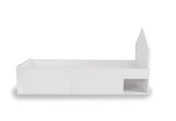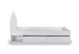 Available in a pristine white finish, this bed effortlessly blends style and utility.