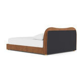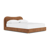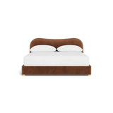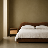 Contemporary fabric bedframe with a curved silhouette headboard