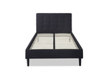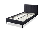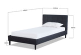 Give your bedroom an update with the stylish Murten King Single bed. This modern and contemporary design features a tufted cushioned headboard frame that not only looks beautiful but is also comfortable to rest against after a long day. This bed is crafted from sturdy plywood, supported by strong metal legs. Beautifully upholstered in soft, charcoal linen, this bed frame is suited to most bedroom decors. This bed comes with a 2 year guarantee. Mattress not included.
