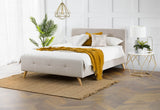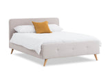 This queen size bed comes upholstered in a soft natural linen coloured fabric that will compliment and add a softness to any bedroom decor.