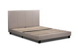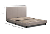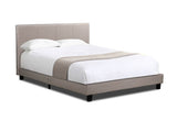 This bed has a fabric upholstered headboard and frame for a sleek, modern design and maximum comfort. It features a sturdy framework and slatted base for durability and support.