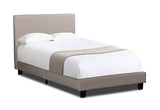 This bed has a fabric upholstered headboard and frame for a sleek, modern design and maximum comfort. It features a sturdy framework and slatted base for durability and support.