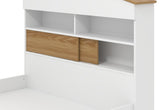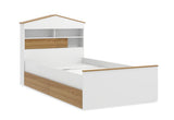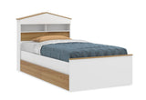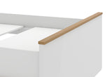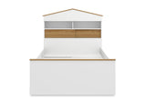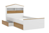 Available in a sleek white finish with natural-coloured accents, this bed seamlessly complements a variety of decor styles. The bed features two spacious storage drawers underneath, offering practical storage solutions for clothing, bedding, or other essentials, keeping the room tidy and organised.