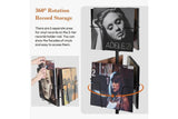 - Organize and showcase your vinyl collection with ease using our innovative rotatable record stand. With three sections and space for up to 200 records, you can easily categorize and display your prized collection. Elevate your living space or music room with this stylish storage solution.