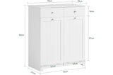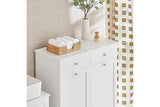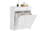 - This storage cabinet is the perfect addition to any bathroom. It offers two drawers, two doors and two concealed laundry baskets, providing ample storage space for all of your bathroom essentials. With its sleek design and modern features, it will make a stylish and practical addition to any home.