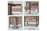 With its eclectic appeal, the Artiss Barnsly Bedside Table will make for an exceptional piece of furniture in your bedroom. Or for any room. Made from 15mm thick E1 board, the bedside table is durable and stands up to robust use. The black metal frame not only provides a strong and stable structure but also adds to its charm and character. Plus, the two spacious drawers with modern handles provide ample storage space and run on anti-rust runners for smooth operation. Not least, the ensemble is easy to maintain and clean with minimum hassle.