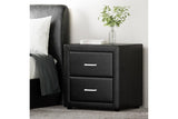 Artiss Bedside Table 2 Drawers Side Table Leather - CADEN Black