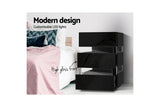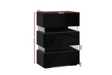 Artiss Bedside Table LED 3 Drawers - LUMI Black