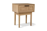 Made of high-quality particle board with smooth paper veneer finish and solid wooden legs with PVC coating, the bedside table is sturdy and durable with equally fine hardware to ensure trouble-free use every time. Although unassuming at first, the bedside table has a real rattan drawer front and sleek aluminium drawer handle that will add a touch of exotic chic appeal to any bedroom. Or you can use it in any space or in any room where a convenient and compact drawer will do wonders for your storage needs.