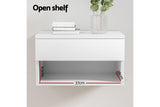 Introducing our Artiss Bedside Table: crafted from durable particle board, featuring an open shelf for storage, easy-to-clean surface, and straightforward assembly for convenience in any bedroom setting.