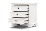Stop Wasting Time Worrying About Where To Keep That Diary That You Need In Your Bedroom On A Regular Basis. Bring Home This 3-Drawer Bedside Table And Solve Your Bedroom’s Storage Space Problem Forever. The Bedside, Designed In A Coastal Style, Is An Excellent Addition To Your Bedroom. Its Drawers Have Full Metal Extension Runners And Shiny, Black Metal Knobs. The Top Drawer Has Black Felt For The Safe Storage Of Delicate Items. The Bedside Table Is Made Of Sustainably Harvested Solid Acacia Timber. The Wood Is Known For Its Good Looks, Shock-Resistance, And Durability. The Furniture Piece In A White Painted Finish Goes Well With A Variety Of Interior Decor Styles, And With The Fully-Assembled Bedside.