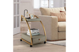 Giantex 2-tier Mobile End Table C-Shaped Sofa Side Table w/Lockable Wheels & Drawer Mobile Serving Cart Grey