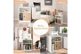 2 end tables provide ample storage space that includes open compartments and closed cabinet to store your daily necessities or display decorations. The rounded handle is convenient to open and close the door of the cabinet. In addition, the back hole also offers a solution to your messy cables. These white night stands are constructed from high-quality wooden panels, which are long lasting and ensure strong stability. The water-proof and wear-resistant surface is also easy to clean. This set of side tables has wide applications in various places, such as the bedroom, living room, study, office, etc.