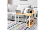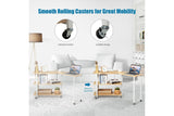 Giantex Mobile L-Shaped Side Table 360° Rotating Corner Desk w/2-Tier Storage Shelf Wood End Table Home Office Walnut
