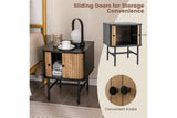 Giantex Modern Nightstand Bedside Storage Table w/Sliding Doors & Metal Legs Floor Side Table Bedroom Living Room Black