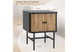 The nightstand fulfills your storage and showcase needs. There are 2 sliding doors for storage convenience and wide tabletop to enlarge display space. For reliable structure, the end table is made of durable board for long-lasting use and supported by 4 sturdy metal legs for strong stability. The mid-century modern nightstand enhances the aesthetics of your home, making it ideal for living room, and bedroom, etc.