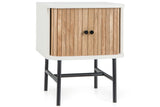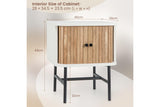 The nightstand fulfills your storage and showcase needs. There are 2 sliding doors for storage convenience and wide tabletop to enlarge display space. For reliable structure, the end table is made of durable board for long-lasting use and supported by 4 sturdy metal legs for strong stability. The mid-century modern nightstand enhances the aesthetics of your home, making it ideal for living room, and bedroom, etc.