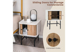 Giantex Modern Nightstand Bedside Storage Table w/Sliding Doors & Metal Legs Floor Side Table Bedroom Living Room White