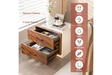 Are you looking for a functional and decorative piece of furniture for the sofa or bed side? Take a look at this 2-drawer nightstand! It generously offers you with a wide tabletop and 2 deep drawers, making the perfect display of the vases, photos and lamps, and giving enclosed space for private items and other bedtime essentials. Besides, the drawers are fitted with convenient handles and silent slides, which allow you to open the drawer with ease. And the accent end table is well-constructed. With non-slip foot pads, it’s easy for you to move it on the floor without leaving scratches. What’s more, the unique combination of walnut wood grain and clean finish makes the bedside table a low-profile and elegant complement to different furnishing style.