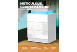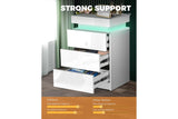 Oikiture Bedside Table 3 Drawers RGB LED White