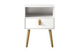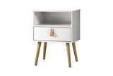 Oikiture Bedside Table Drawer Side Table w/ Leather Handle White