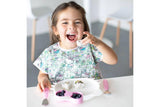 Bumkins Hello Kitty Short Sleeve Junior Bib is a must have for messy toddlers! With a handy crumb catcher / catch-all pocket for containing spills. Made from Bumkins lightweight, waterproof, easy-wipe, stain and odor resistant fabric. Single ply construction means no worrying about icky stuff growing between layers of fabric. Without a cotton layer, stains and smells don’t stick. Wipeable and machine washable for easy cleaning so you can use it over and over again! The back hook and loop closure allows for a quick, adjustable and tug-proof fit.