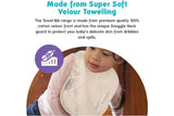 These bibs are a favourite of Mums and Dads everywhere – “Best Bibs ever” they say! The Towel Bib range is made from premium quality 100% cotton velour front and non-rip nylon backing. It has the unique Snuggle Neck guard to protect your baby’s delicate skin from dribbles and spills. This bib is designed for bottle or breast feeding and for the messy first days of solids. Easy wash and tumble dry safe, they stay soft and bright, wash after wash.