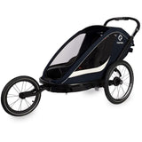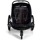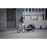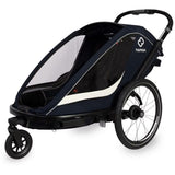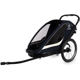 The Hamax Breeze Two Child Trailer in Navy is designed for biking, strolling, and jogging, making it ideal for active parents. Each seat reclines independently, allowing one child to relax while the other enjoys the view. Safety features include a handlebar brake for downhill control, a 5-point harness, and reflective stickers for visibility. It comes with an integrated rain cover and a detachable backpack, adapting easily to any adventure. The trailer can also be converted to jogging mode with the larger front wheel Jogger Kit, which is sold separately.