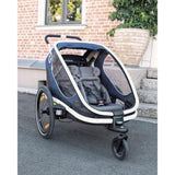 The Hamax Outback Two Child Trailer gives you and your children excellent safety and comfort to take the stress out of the family bike rides. Hamax designed the Outback Two Trailer to be as safe as possible with a durable aluminium frame and a unique Safe Connection point that secures a safe switch between the bicycle arm, jogger wheel and stroller wheel. This connection point simply shows a red field when it is not connected properly and a green field when mounted correctly. New to the Outback Two is the reclining feature, which allows you to adjust the angle of the seat for improved comfort and vision. Your child will still be secured by the secure 5 point harness for optimised safety on every ride.
